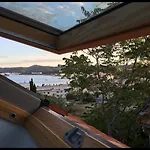 I Chalet Les Mimosas kan du njuta av utsikten över havet. I badrummet finns även en separat toalett och en dusch. Hårtorkar, badrockar och handdukar erbjuds också.